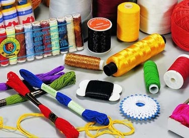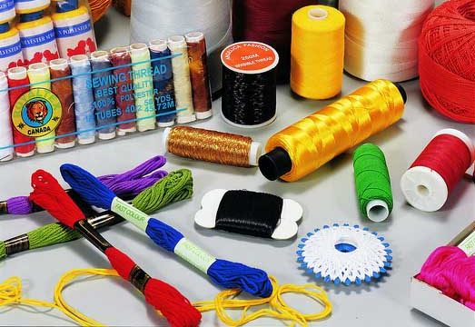 Various kinds of fabrics, sewing accessories, sewing and needlework products.