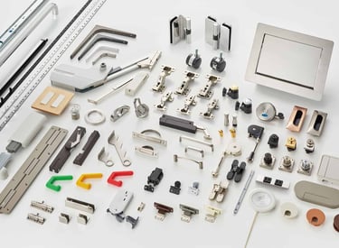 Hinges, rails, fasteners, handles, legs, lifting mechanisms, hardware for cabinets and kitchens