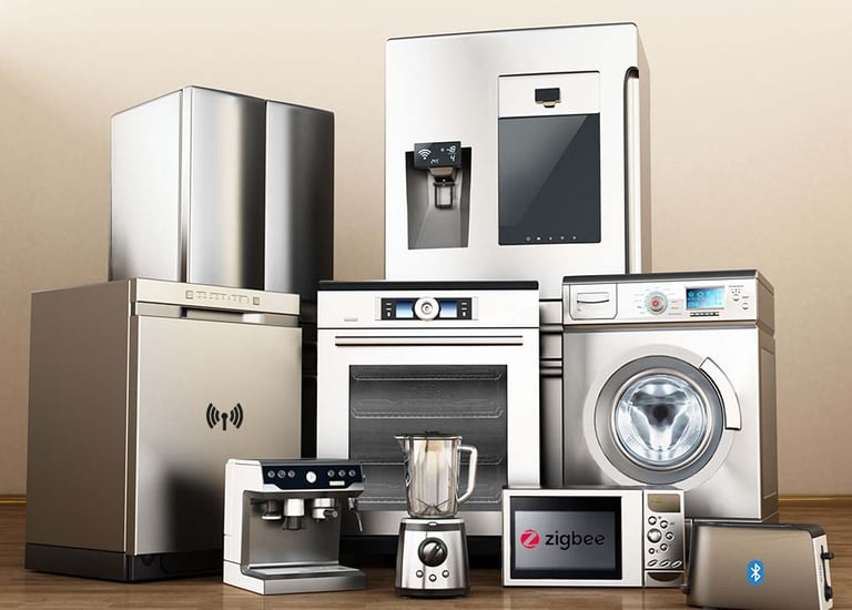 Kitchen and home appliances, lighting, small household appliances, electrical accessories.